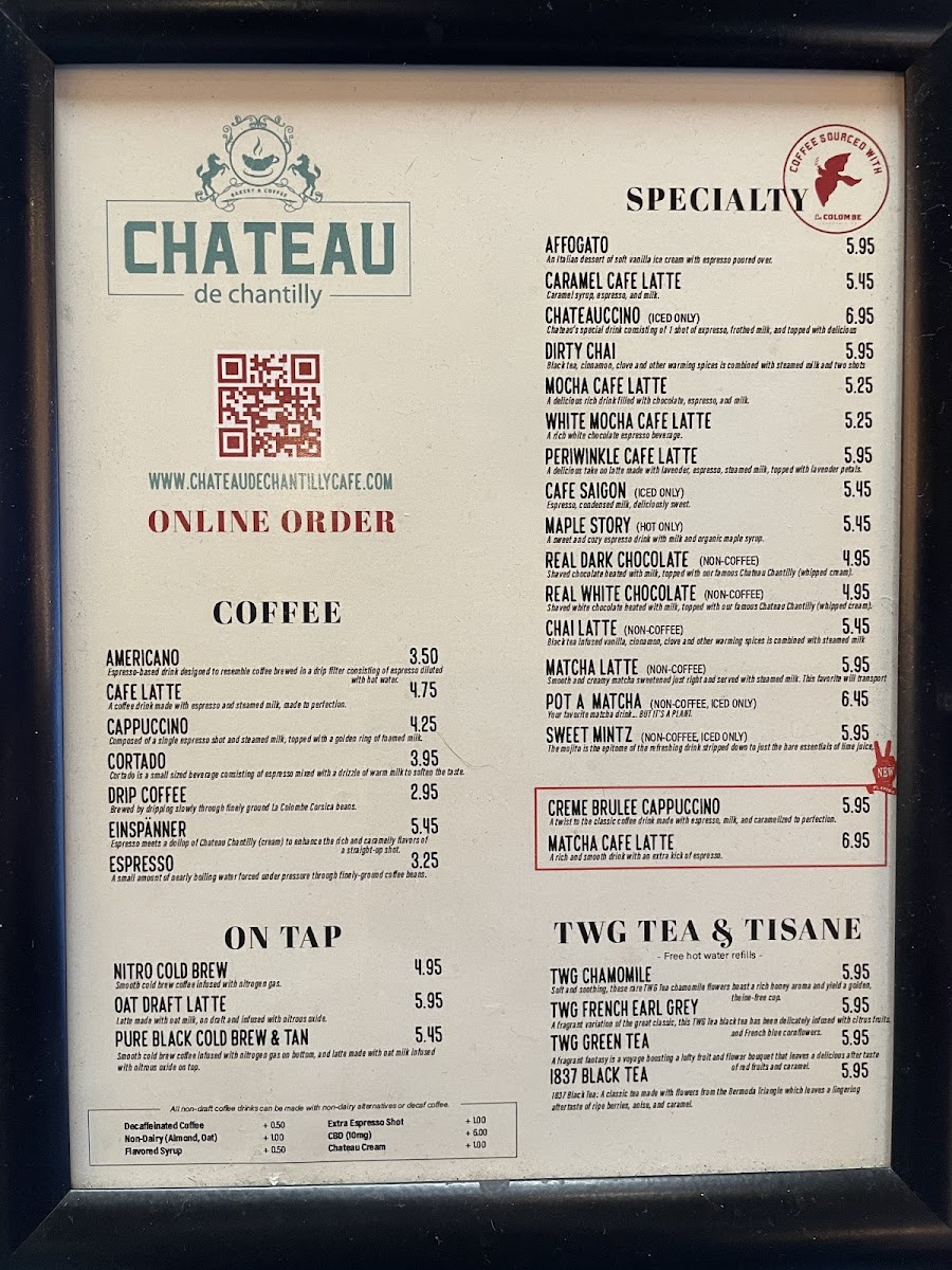 The menu’s thoughtful balance between indulgence and sophistication shines through each item, inviting both coffee aficionados and non-coffee drinkers alike to savor something special. With its inviting ambiance and diverse seating—from cozy couches to quiet study nooks—this spot encourages guests to linger, explore its wine offerings, or enjoy a peaceful retreat with a book. Chateau de Chantilly Cafe is more than a cafe; it’s a delicious journey for the senses.