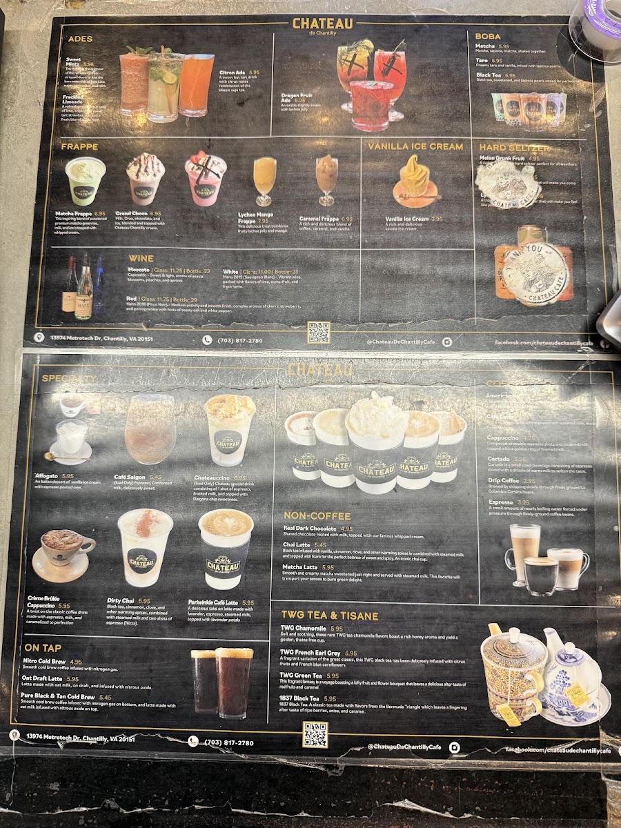 Chateau de Chantilly Cafe in Chantilly, VA offers an exquisite array of sweet and savory delights that elevate the typical cafe experience. This charming bakery and coffee shop features a refined selection of pastries, cakes, cupcakes, and gluten-free options, such as pistachio cannoli and inventive mousse cakes in flavors like chocolate, matcha, and strawberry basil. The café pairs these artisanal desserts with rich espresso-based beverages including beautifully crafted white mochas, pistachio lattes, and robust cappuccinos.